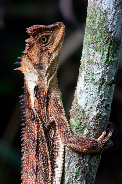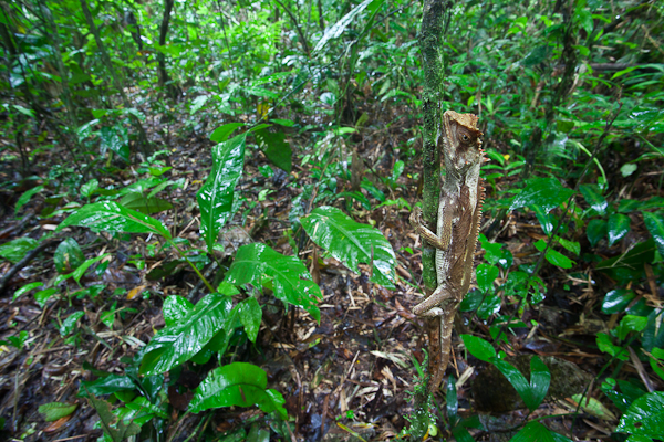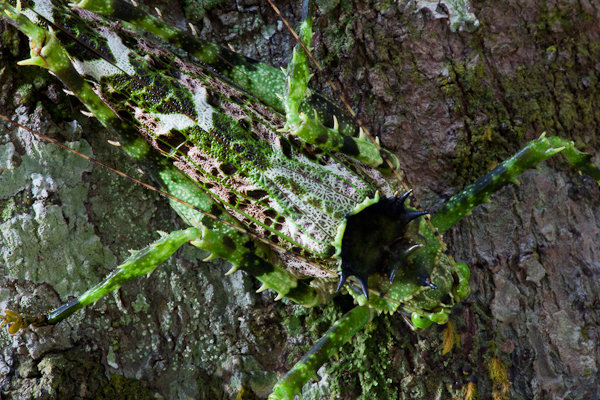 We had a great experience at El Gato. The night walks were great and we took the time to walk slowly on the trails and look for camouflaged creatures in the vegetation and in the trees. One day we found two incredibly neat (and cooperative) lizards by the side of the trail. They were so well hidden that it was only a lucky glance that brought them into focus. We had a great time photographing them and felt lucky to have seen them. To give you a sense of scale, they are almost a foot long.