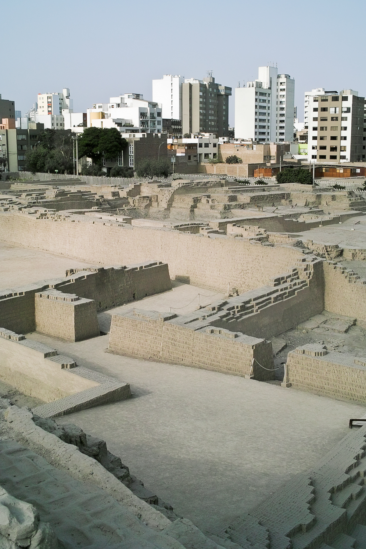 Below are a few pictures from my tour of Huaca Pucllana, ruins of the Lima culture that reigned in Cusco between 200 and 700 A. D. The ruins were fascinating – they were built in a “bookshelf” style to withstand earthquakes. In the photos, I tried to capture the juxtaposition of these ancient ruins in the middle of the bustling city.