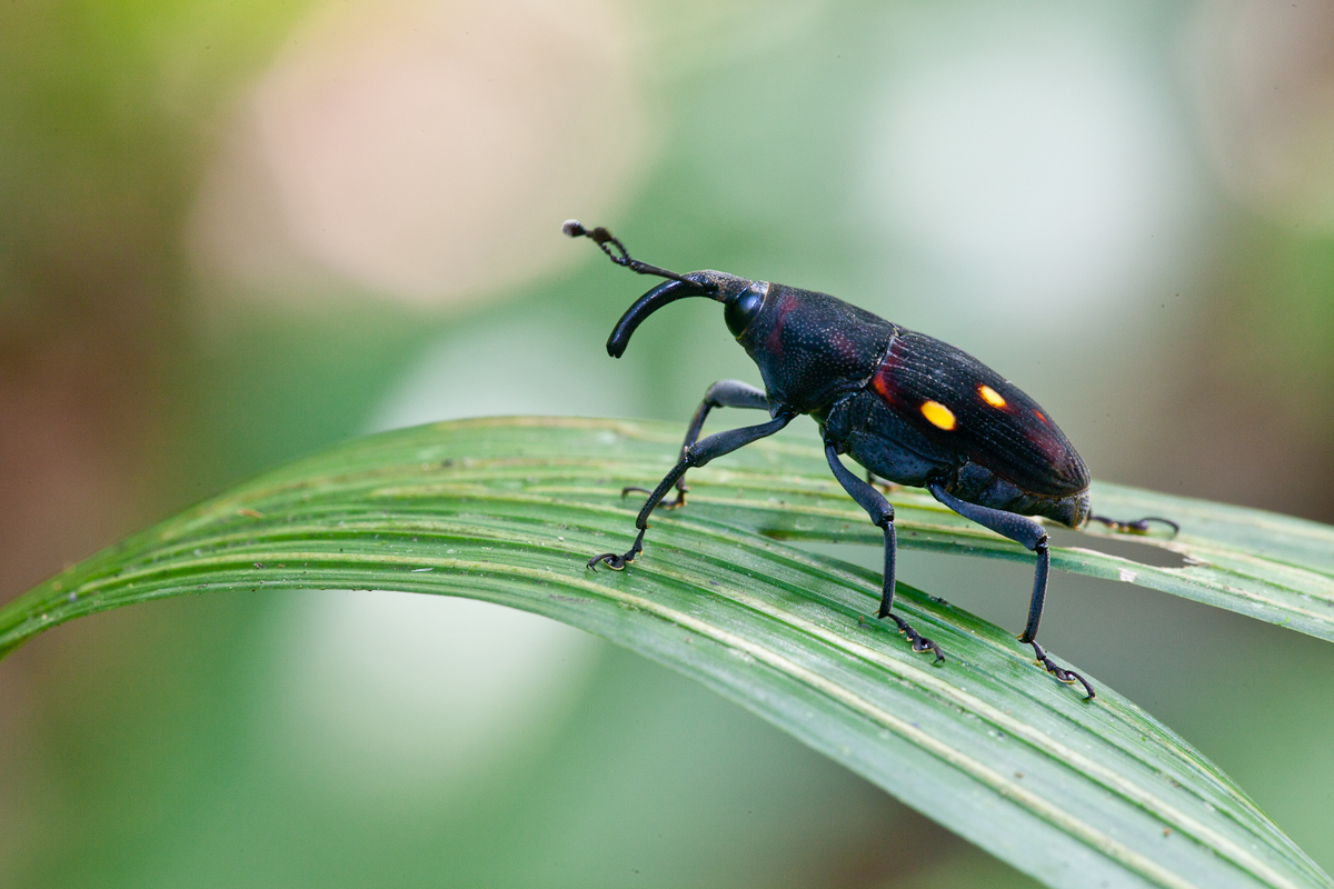 Today was a ‘normal’ photography day. Freddy yelled into my tent at 4:55am and we set off for the small collpa. I came armed with an extra poncho to wrap around my legs while we wait for something to come. After 90 minutes, I called it quits and began photographing some flowers near the trail. Freddy disappeared into the woods for a while and I wandered around. He returned after 10 minutes to report on his findings: a swarm of ants, a yellow and blue beetle, and a flower. I fancy that I have well-trained eyes in the jungle, but he outdoes me every time.