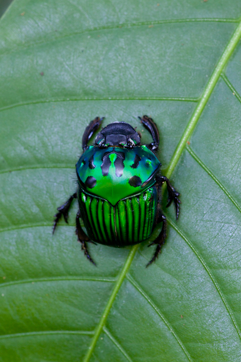 I spent the rest of the day following the men as they opened a new trail. Sighting of note include an olive green oropendola, an iguana, and an anole. At night two click beetles with headlights came to the campsite. I was able to pick them up and examine them closely for the first time. They are often confused with lightening bugs, but they have two pinpoints of light at the front of their bodies – like headlights on a car.