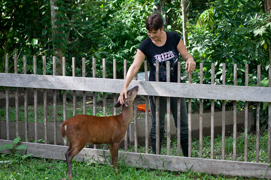 While we were visiting Magali got news that she would receive a new Titi monkey. This leads to a flurry of activity. They have a special area called the “quarantine area” for new animals. Magali has visitors at the shelter and new animals aren’t adjusted to the movement of many people. The monkey will have a new shelter in a quiet part of the forest. Each animal also has a very specific diet. The list is incredible – one boiled egg, three leaves of lettuce, one beet, half a papaya – and that is just for a single species.