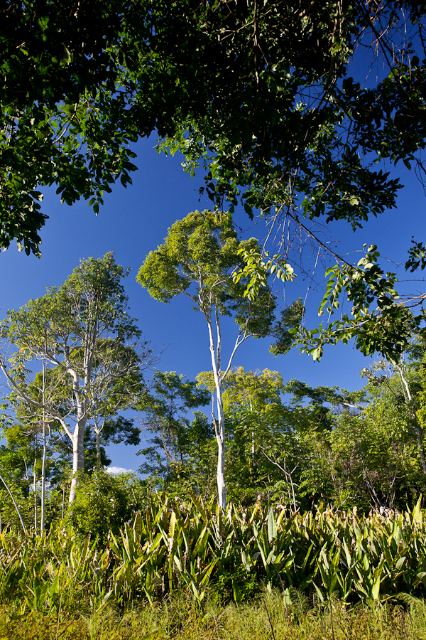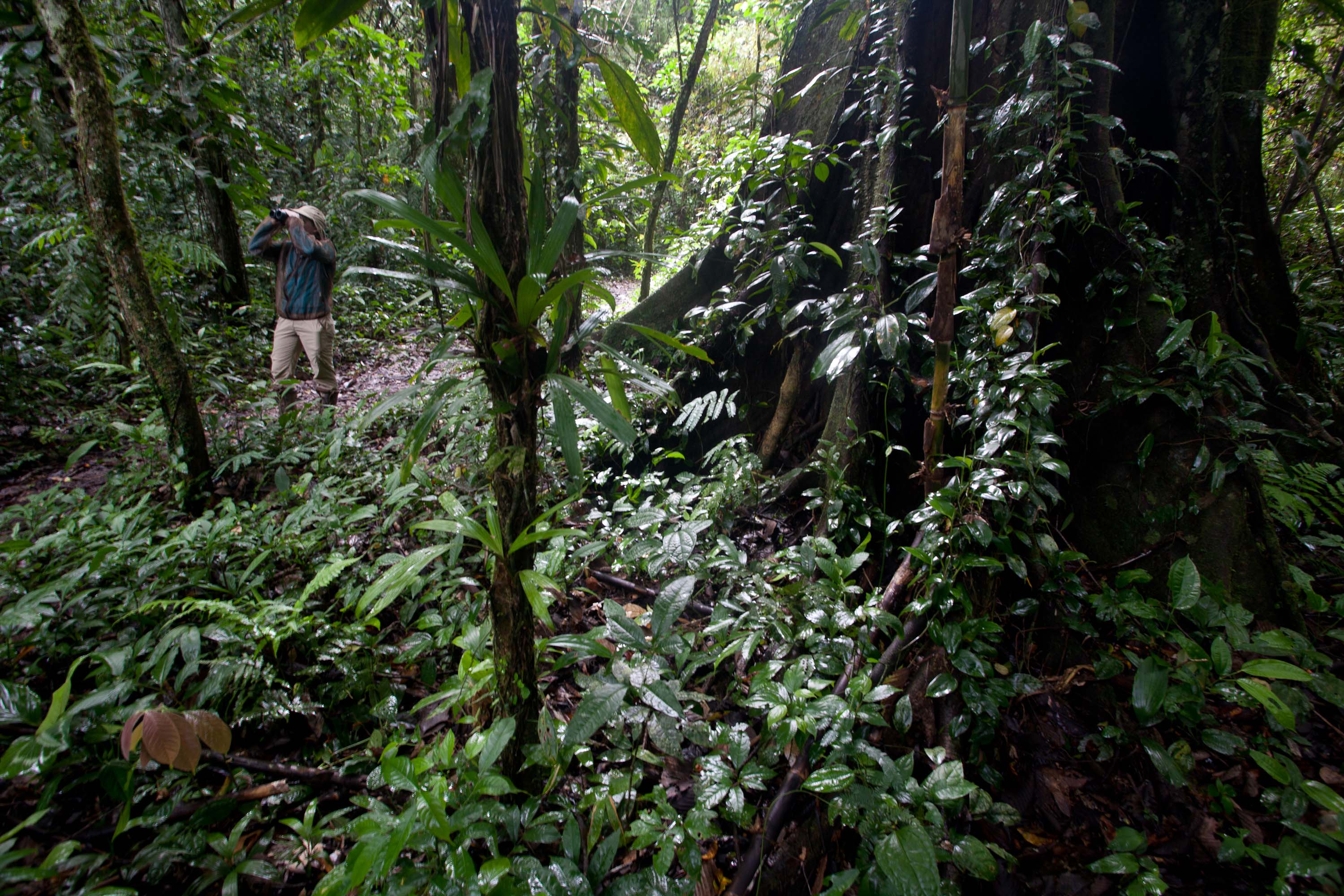 Percy is trying to create an ecotourism experience based on birdwatching and wildlife viewing. The property is perfect for it. Two rustic cabins are situated on the bank of the Tambopata River. You can look out at the river and feel a nice breeze all day long. He has a trail of over three kilometers that goes into primary forest. The trees are beautiful – he has ceibas and ironwoods that are of a size that is almost impossible to find in this region (they have all been cut down for lumber). We walked through the forest for over four hours and he showed me the swamp where he is planning to build a boardwalk and canopy tower. We heard hoatzins, saw hummingbirds, and tasted native cocoa fruits as we made our way through the selva.