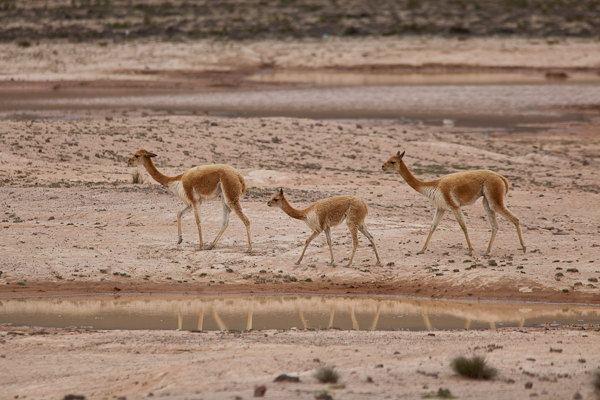 The tour started with a drive to the canyon (about four hours) with multiple stops along the way to see flamingos and vicuñas. Vicuñas are one of two wild species of South American camelids. They were highly endangered in the 1970s, but have now recovered in numbers. We were able to observe them from the side of the road and watched as they grazed on the high plains. We also saw Chilean flamingos and a number of other high elevation birds (giant coots included) in the puddles along the road.